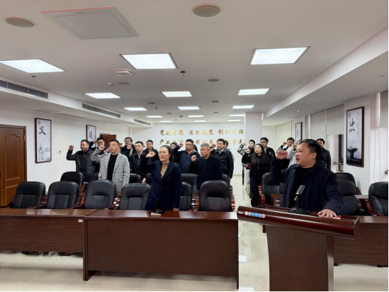 首先,开展宪法宣誓仪式。王君同志领誓,左手抚按《中华人民共和国宪法》,全体干部职工肃立、右手举拳,庄严宣读誓词,以铿锵誓言彰显对宪法的尊崇与履职担当。