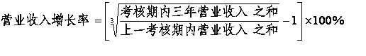 三年营业收入平均增长率分值25分,其中基本分20分。完成目标值时,得基本分20分。三年营业收入平均增长率完成值每超过目标值1个百分点,加0.5分,最多加5分;完成值每低于目标值1个百分点,扣0.5分,最多扣5分。
